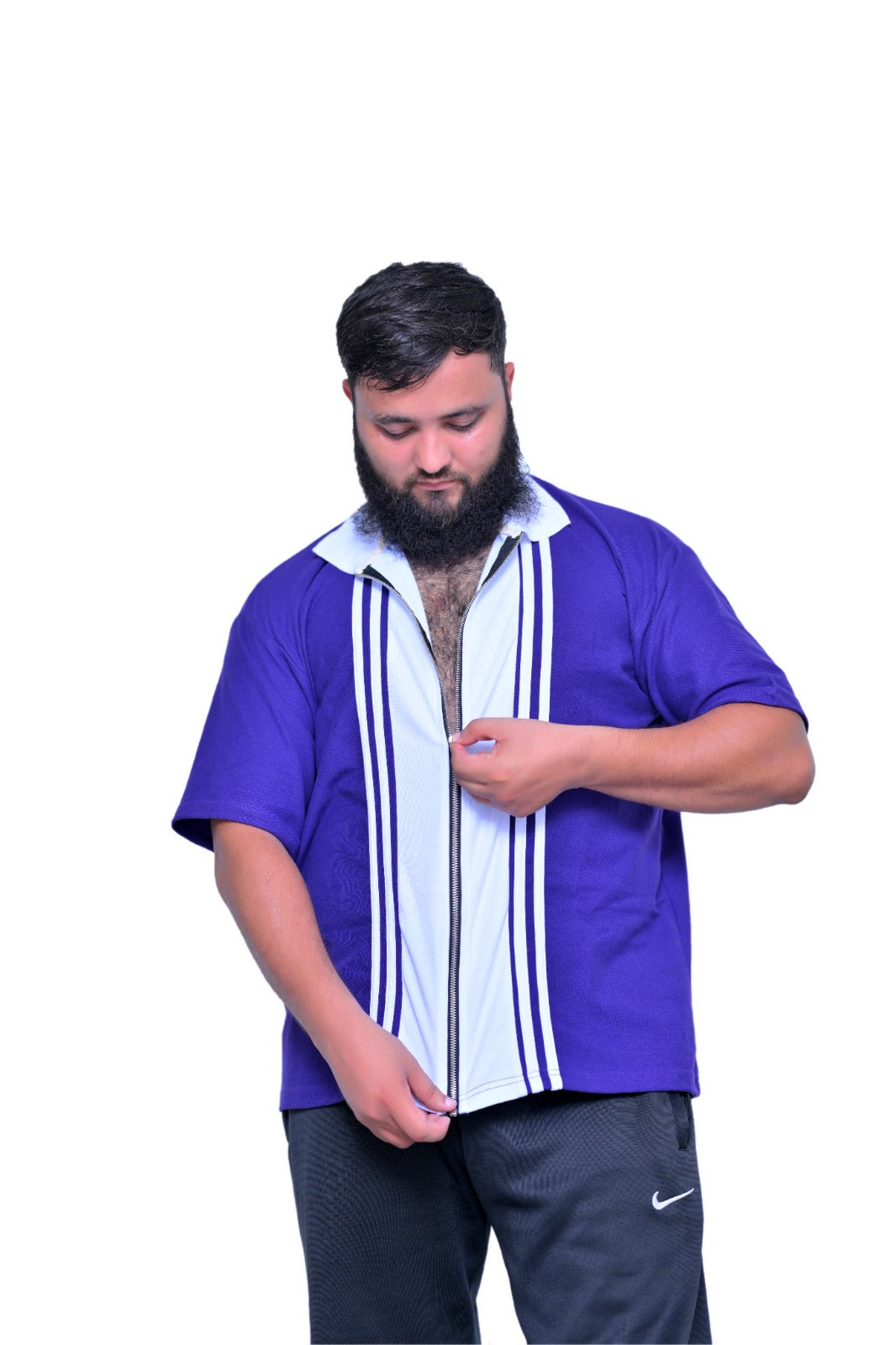 Refresh your everyday style with this casual purple zip-up short sleeve shirt, designed for comfort and a modern look.