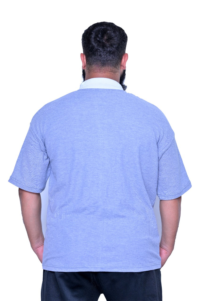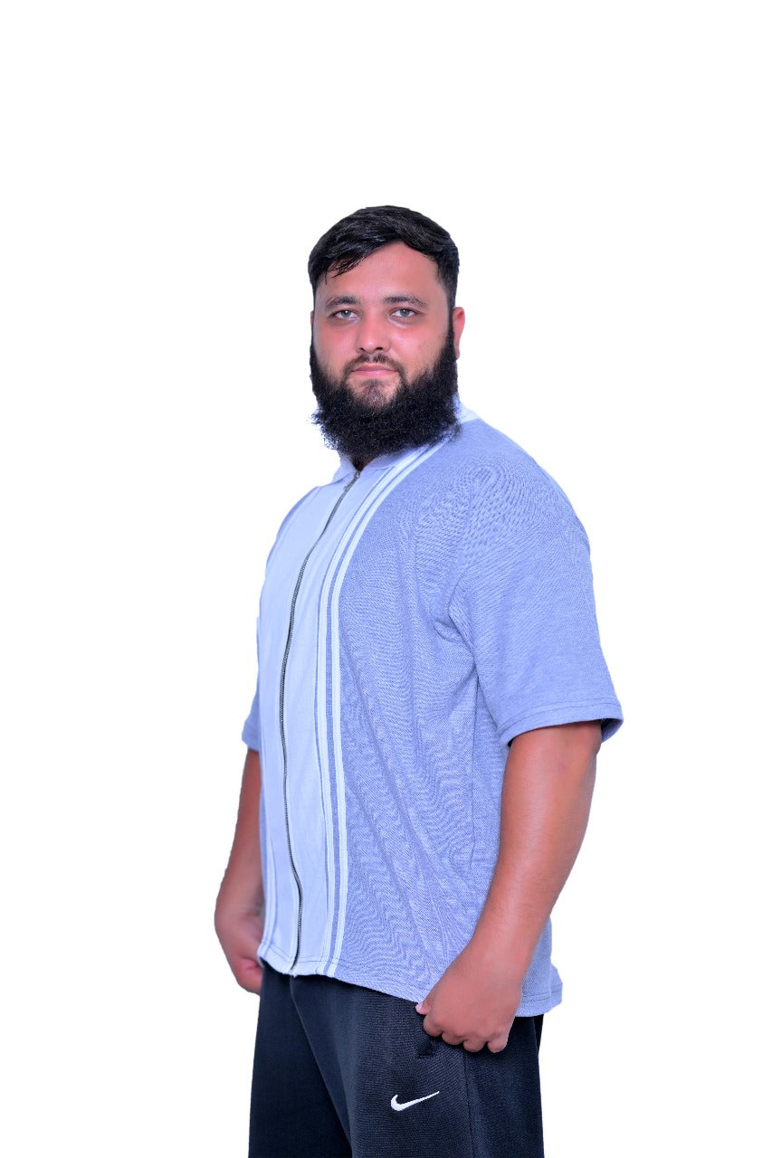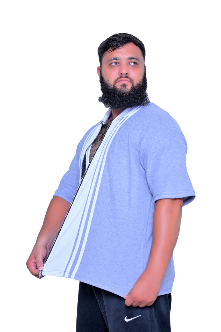 Bring comfort and style together with this Men’s Light Blue Zipper T-Shirt. Designed with a unique front zip closure and short sleeves, this piece combines the relaxed feel of a T-shirt with the versatility of a casual jacket