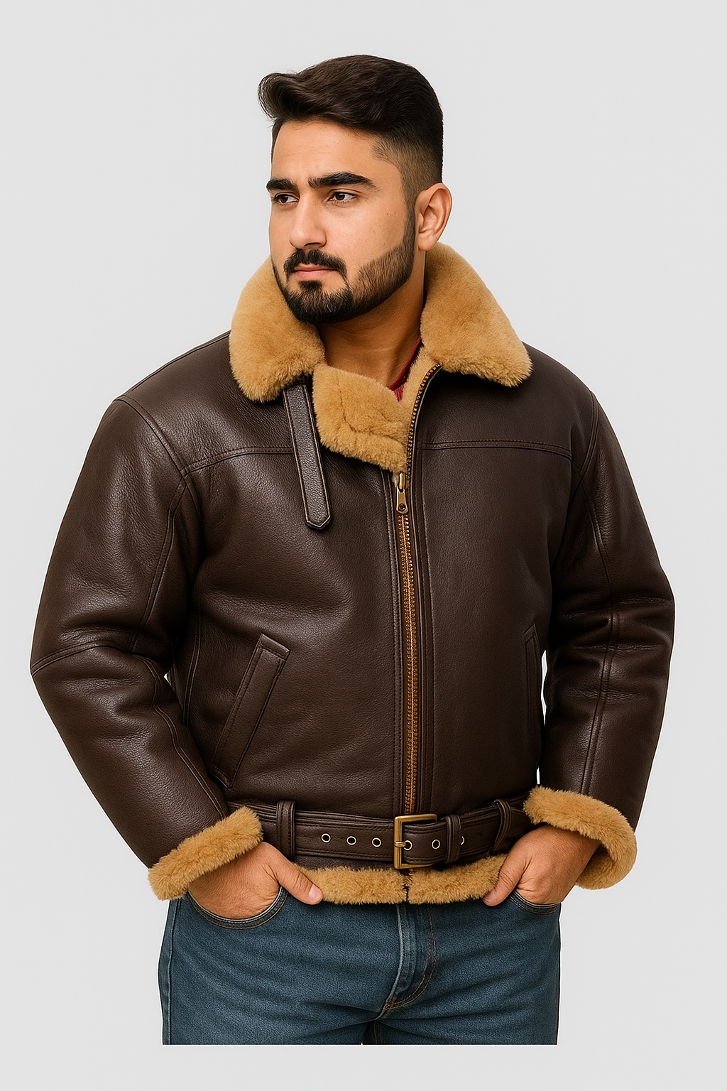 This classic brown leather jacket adds a bold and stylish edge to your wardrobe.